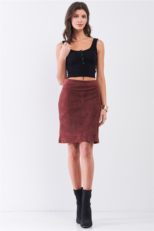 Suede High-Waisted Asymmetrical Stitch Mini Skirt