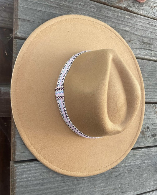Wide Brim Panama Hat in Vegan Felt with Jacquard Tape